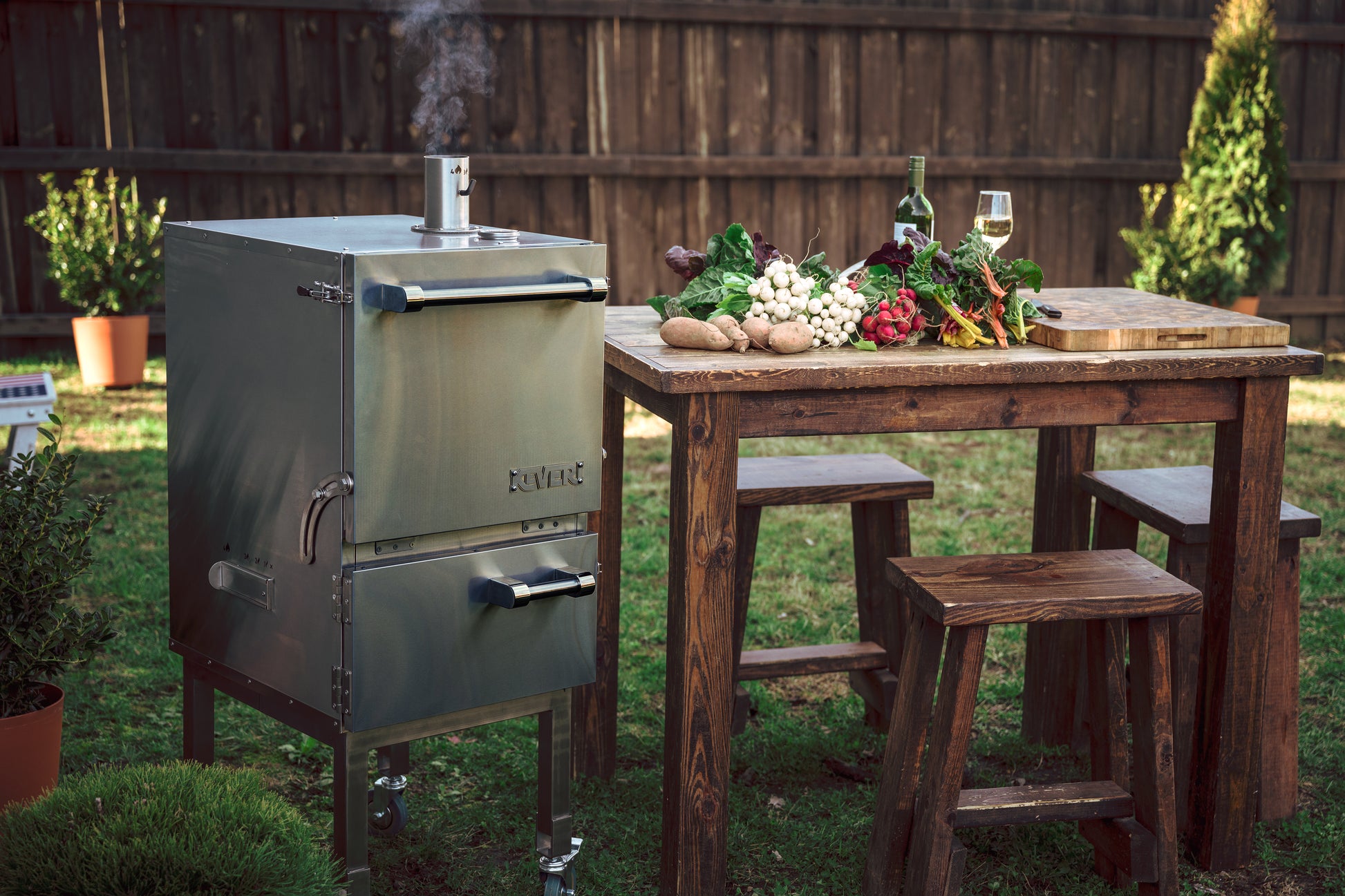 The only multipurpose charcoal oven designed to grill, smoke, roast, & bake in your backyard.